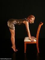 Usually achieved with the assistance of furniture on which to lean, as in these examples. Bend over at the waist/hips with ass out for spanking.